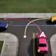 Een verkeerspuzzel waar veel mensen op vastlopen: drie auto’s komen tegelijk aan bij een T-kruising. De roze auto wil linksaf, de blauwe auto wil rechtdoor en...