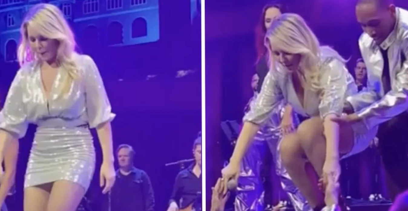 Chantal Janzen was op het podium voor haar nieuwe programma, waar ze niet alleen presenteerde maar ook indruk maakte met pianospel. Ze koos voor een stijlvolle, korte jurk die haar elegante uitstraling benadrukte. De avond verliep vlekkeloos, tot Chantal in een impulsief moment besloot van het podium te springen. Deze sprong, bedoeld als energieke afsluiter, pakte anders uit dan gepland. Door de lengte van de jurk liet ze onbedoeld meer zien dan verwacht, wat direct voor opschudding zorgde onder het publiek en de camera’s.