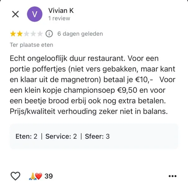 In de wereld van vandaag zijn Google reviews een belangrijk hulpmiddel voor consumenten om geïnformeerde keuzes te maken over bedrijven, producten en diensten. Maar soms leidt een negatieve review tot onverwachte en zelfs ongepaste reacties van bedrijven. Dit gebeurde toen Vivian een slechte beoordeling achterliet voor een restaurant, en de eigenaar in plaats van rustig te reageren, besloot volledig los te gaan en haar op een ongepaste manier te beschrijven.