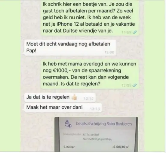 Een veelvoorkomende aanpak begint met een bericht als: “Hoi, ik heb een nieuw nummer.” Daarna volgt een persoonlijke situatie waarbij zogenaamd snel financiële hulp nodig is. Dit werkt omdat het inspeelt op zorg en betrokkenheid. Controleer altijd via een alternatieve route of het verhaal klopt voordat je iets deelt of overmaakt.